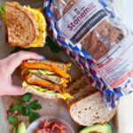Add 2 slices of cheddar, ½ avocado, 3 slices of bacon in the centre of one slice of bread. Carefully fold over the other slice of bread to form a sandwich. Let sit for 2-3 minutes until cheese is melted.