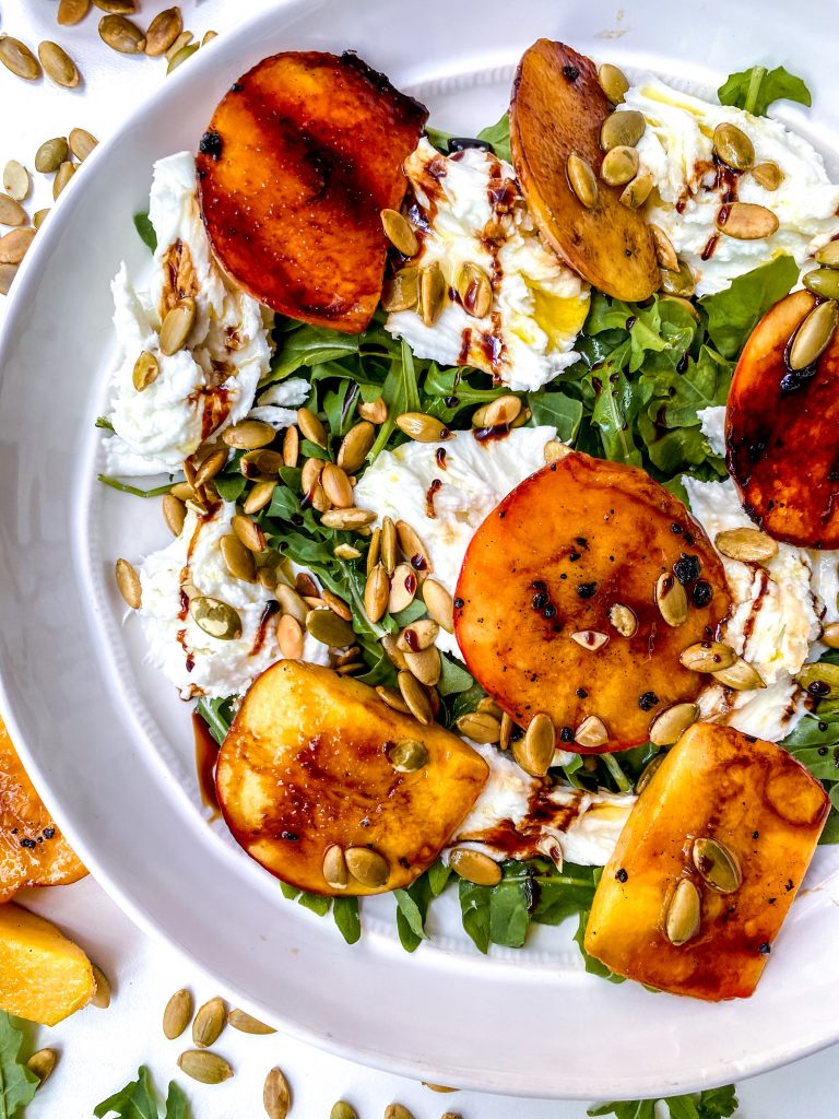 Step up your salad game by elevating simple ingredients! I decided to BBQ my peaches for this recipe and add a drizzle of white truffle on top and it was so tasty! Check out the recipe video on my Instagram!